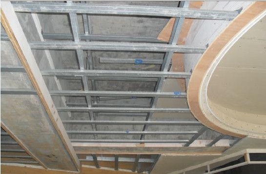 吊頂及隔墻采用輕鋼龍骨材料,主輔龍骨合理布局,使用專用配套連接吊件,與傳統的木結構吊頂相比,杜絕了變形開裂和防火安全等問題。