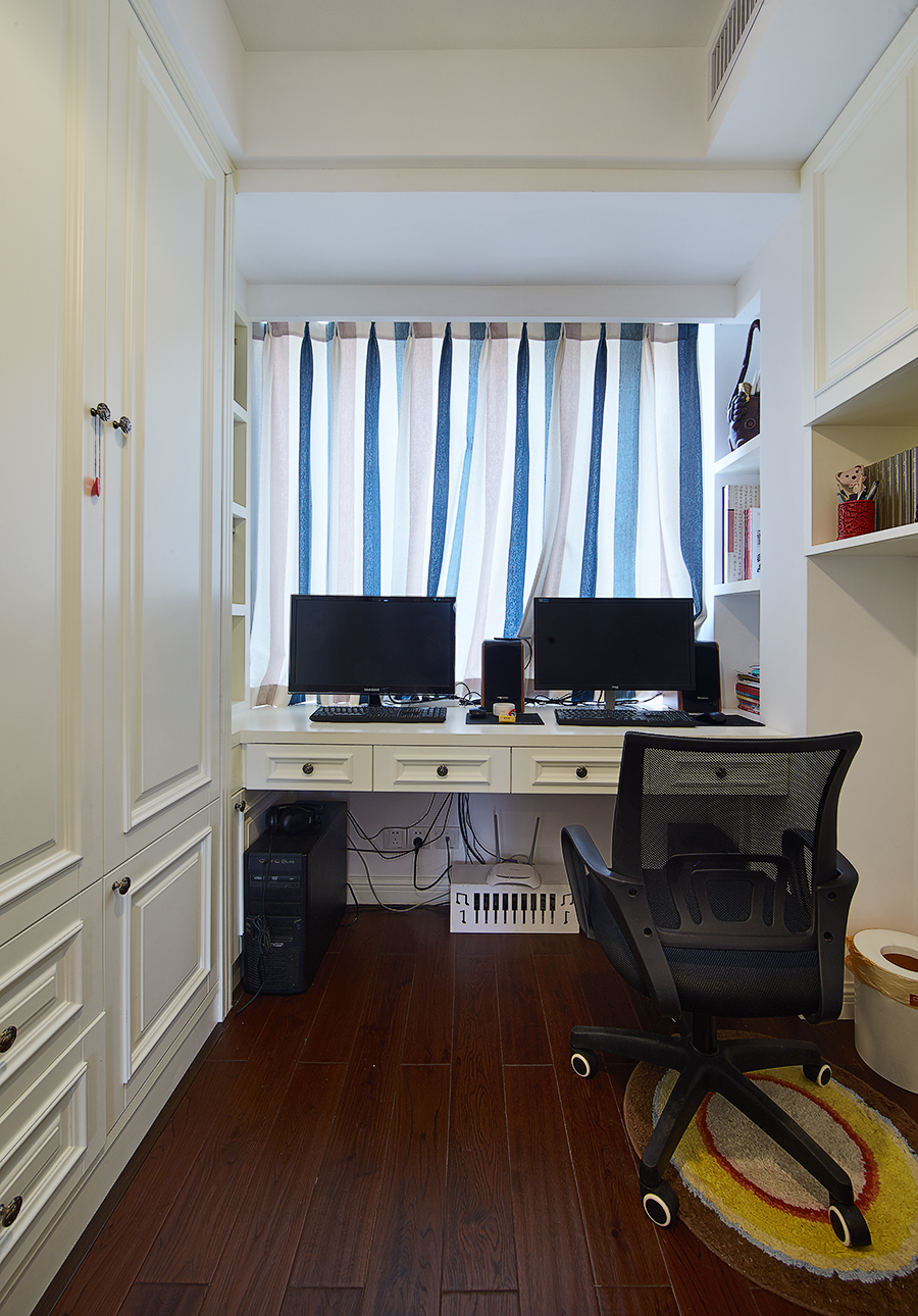 書房是家中電器對照集中之處, 除了電視、空調(diào)等少用家電之外,還要設(shè)置好電腦、打印機(jī)、掃描儀、聲響的電源及網(wǎng)絡(luò)接口。