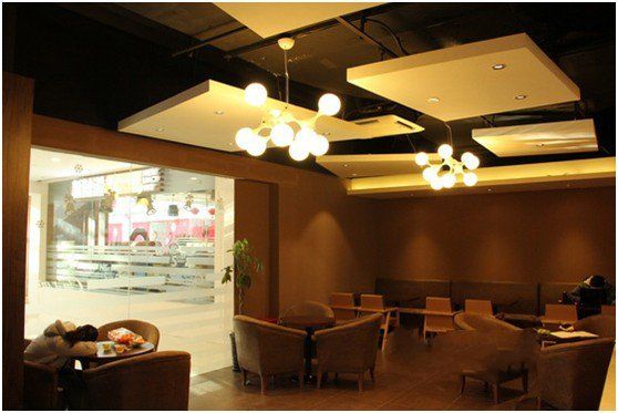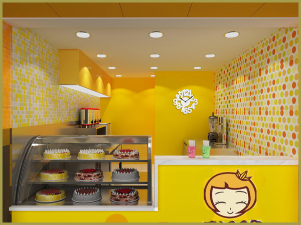色彩不僅運用在整體店面裝修設(shè)計上,如氣氛的渲染,而且在甜品展示柜柜臺展示上,一定要注意運用。一般情況下,喜歡甜品的多以婦女兒童居多,所以一般甜品店的裝修色調(diào)都以健康明朗輕快的暖色調(diào)為主,所以要從這些方面多下些功夫。