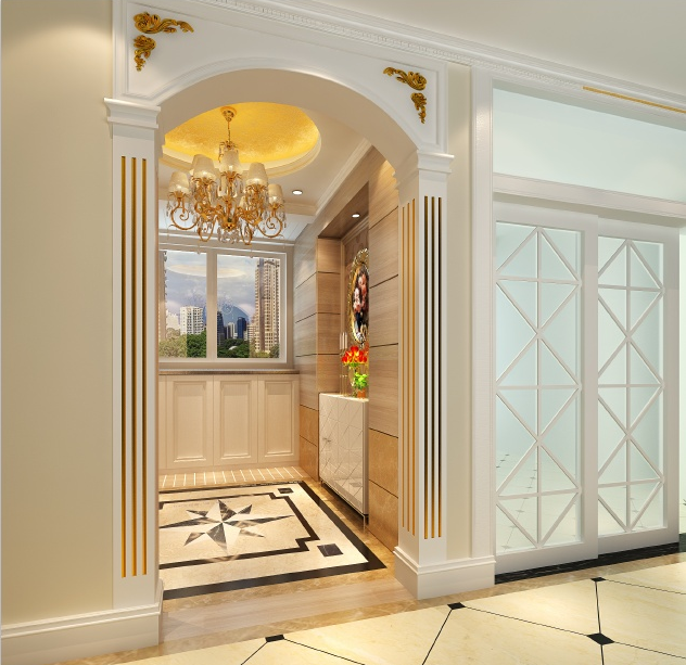 (9)內(nèi)外玄關(guān)華麗大方,對(duì)于空間較大的居室玄關(guān)大可處理得豪華、大方。